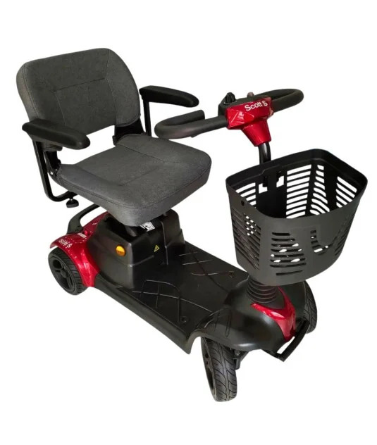 Modelo Scott S ANVISA10292010075 Cor Azul ou Vermelha; Desmontável Sim; Motor Elétrico de 200W; Velocidade Até 8km/h; Freio Eletromecânico; Roda Dianteira 8"; Roda Traseira 8"Bateria2 Baterias 12 Ah / 12 V; Autonomia de Bateria Até 11km; Alimentação Bivolt; Carregador de bateria2A; Indicador de Nível da Bateria Sim; Altura Máxima de Obstáculo 5 cm; Capacidade de Inclinação Até 8°; Capacidade Até 136 kg; Raio de Giro 106 cm; Retrovisor Sim; Farol Dianteiro Não; Lanterna Traseira Sim; Porta Objetos Cesto
